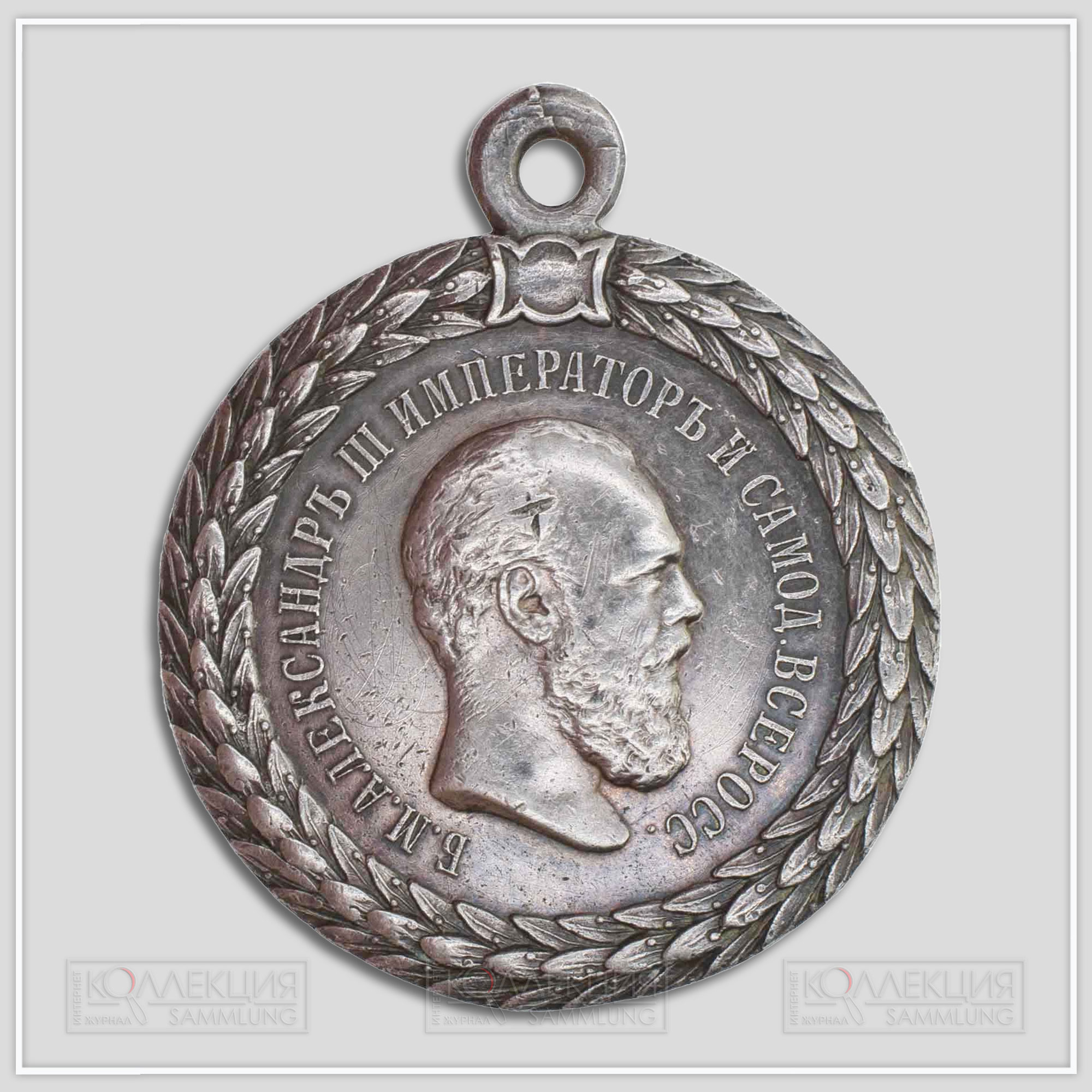 Л. С. Портрет императора Александра III вправо. Надпись по окружности: «Б. М. АЛЕКСАНДРЪ III ИМПЕРАТОРЪ И САМОД. ВСЕРОСС.» На обрезе портрета: «Л. Ш. Р.». По окружности сплошной лавровый венок со щитком наверху.