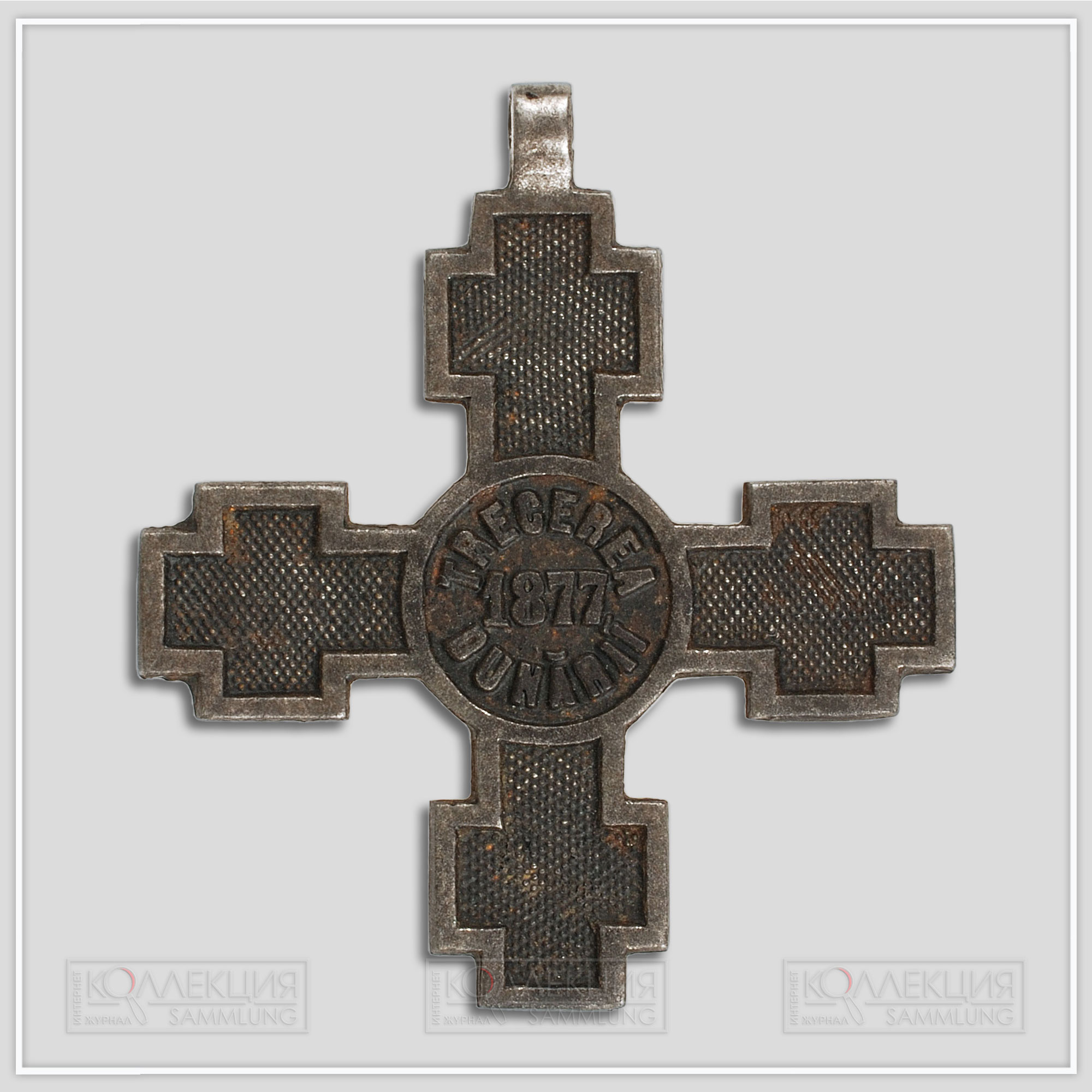«За форсирование Дуная румынское правительство учредило специальный крест «За переход через Дунай». Крест железный, чёрного цвета, четырёхконечный, каждый конец которого с прямоугольным уширением в средней части являет собой как бы самостоятельный крестик; чекан двухсторонний, с рифлёной поверхностью, имеет окантовочный бортик по всему обводу креста. На лицевой стороне его, в круглой розетке, под государственной короной, вензель румынского князя Карла из династии Гогенцоллернов (Кароль I). А на оборотной, в середине точно такой же розетки, помещена дата — «1877», вокруг которой надпись на румынском языке, означающая в переводе «ЗА ПЕРЕХОД ЧЕРЕЗ ДУНАЙ». Этого знака отличия наряду с румынскими были удостоены десятки тысяч русских солдат, офицеров и генералов — участников переправы 15 июня через Дунай, боёв при Плевне, Шипке, Шейнове и других сражений этой освободительной войны (1877–1878 годов). Все русские солдаты и унтер-офицеры за переправу через Дунай получили из казны по 2 рубля. Кроме того, для десантников, отличившихся в сражении на правобережном плацдарме и за Систовские высоты и город Систово, в дивизию Драгомирова были присланы знаки отличия ордена св. Георгия: «…в Волынский и Минский полки по пять крестов на роту, в Подольский полк — по четыре креста и в Житомирский — по три креста на роту. В санитарную роту было выдано шесть крестов, гребцам понтонов — 12 крестов». Эти награды по старой русской боевой традиции были распределены самими солдатами между достойными».
