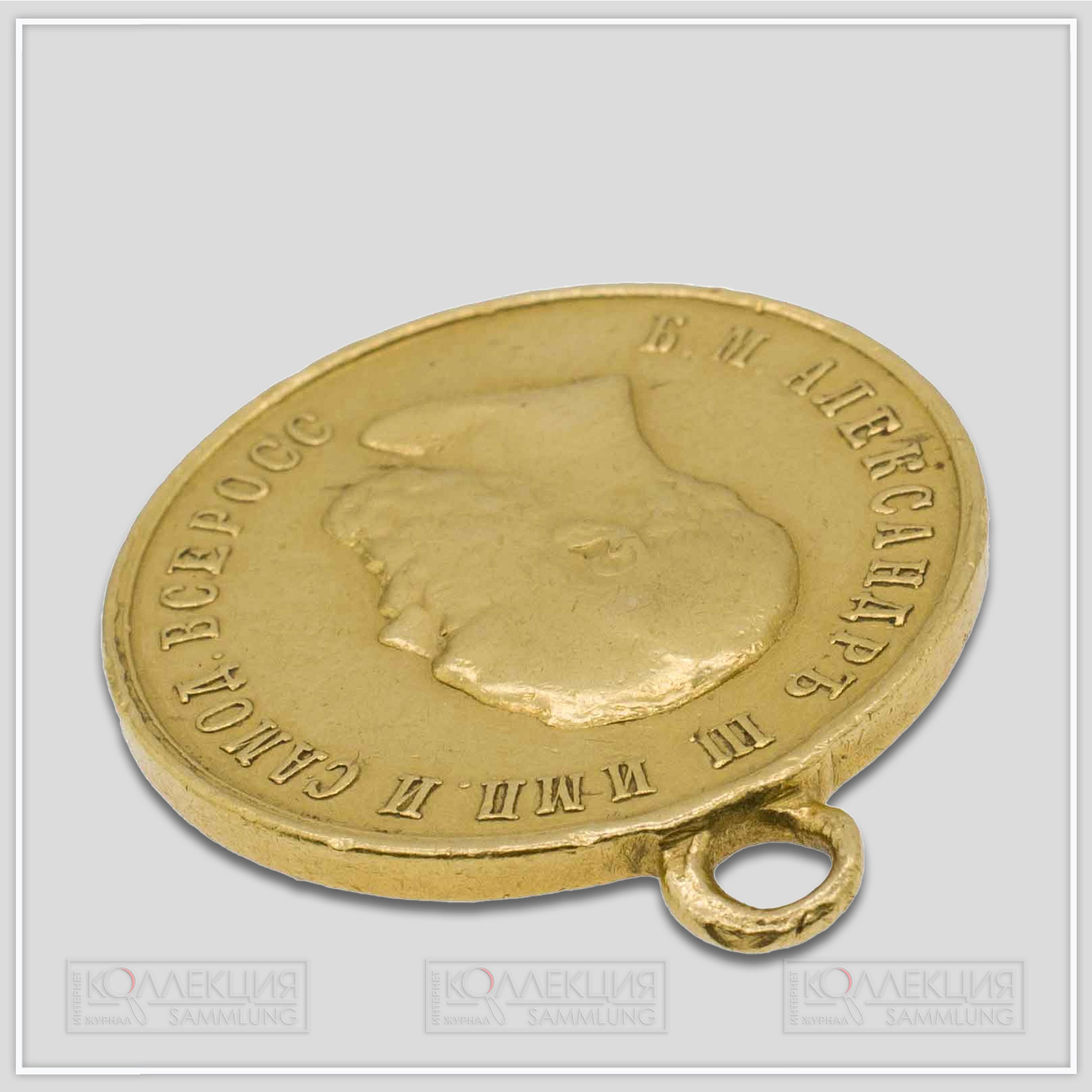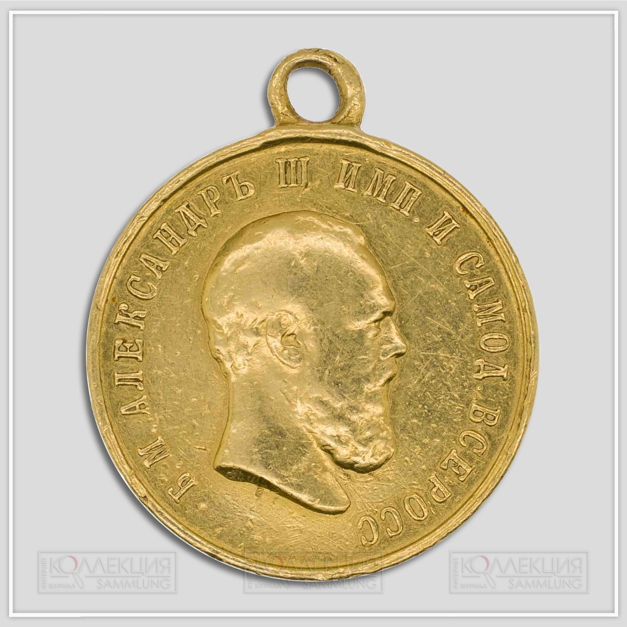 Л. С. Портрет императора Александра III вправо. Надпись по окружности: «Б. М. АЛЕКСАНДРЪ III ИМПЕРАТОРЪ И САМОДЕРЖ. ВСЕРОСС.» На обрезе портрета углубленные буквы: «А. Г.».