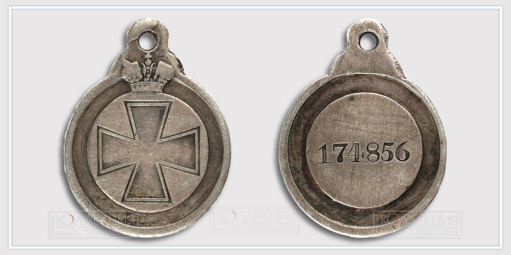 Размер 24,5 мм (без ушка). Изготавливали из серебра, а для нижних чинов иностранных армий — из томпака.