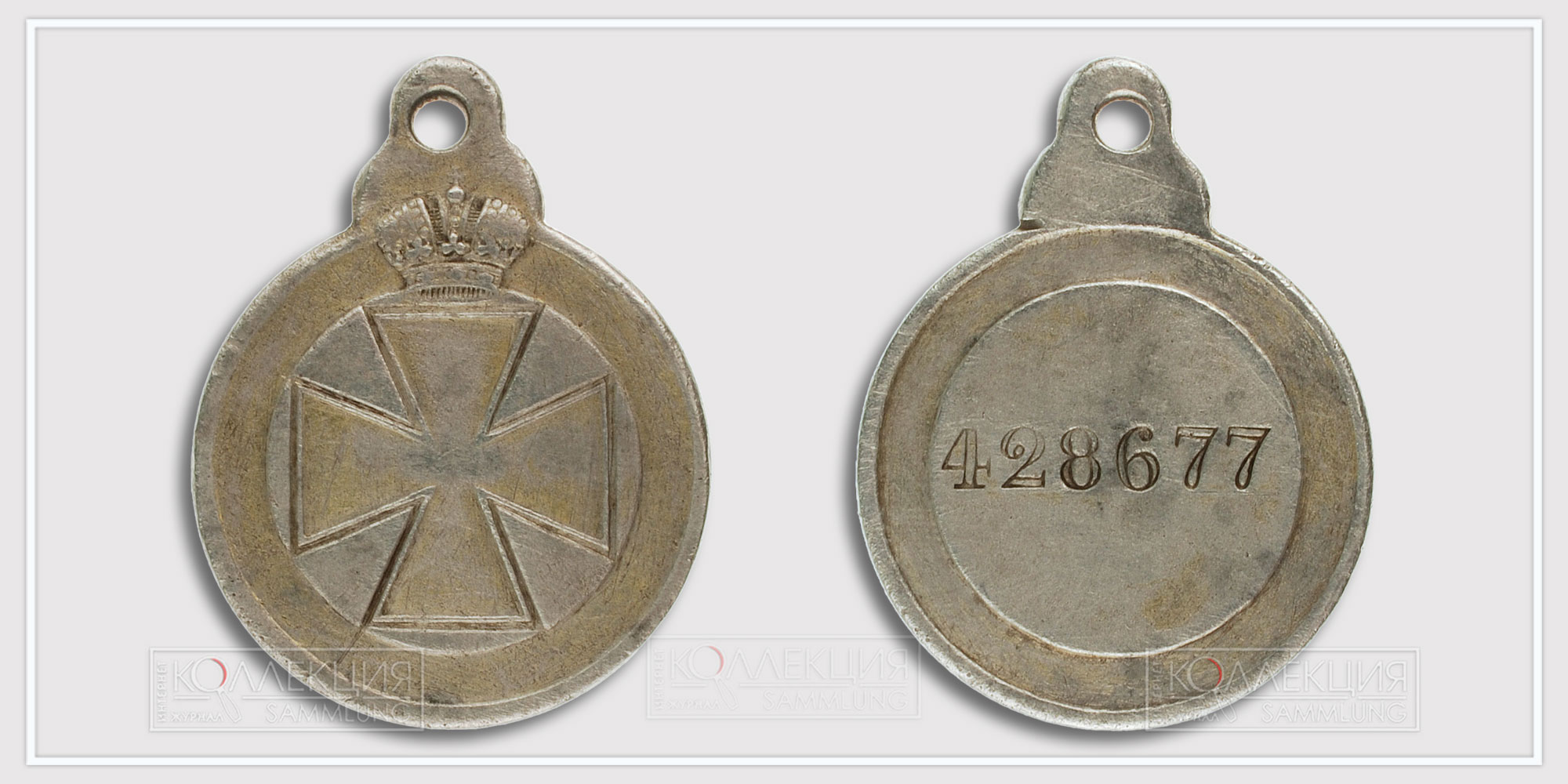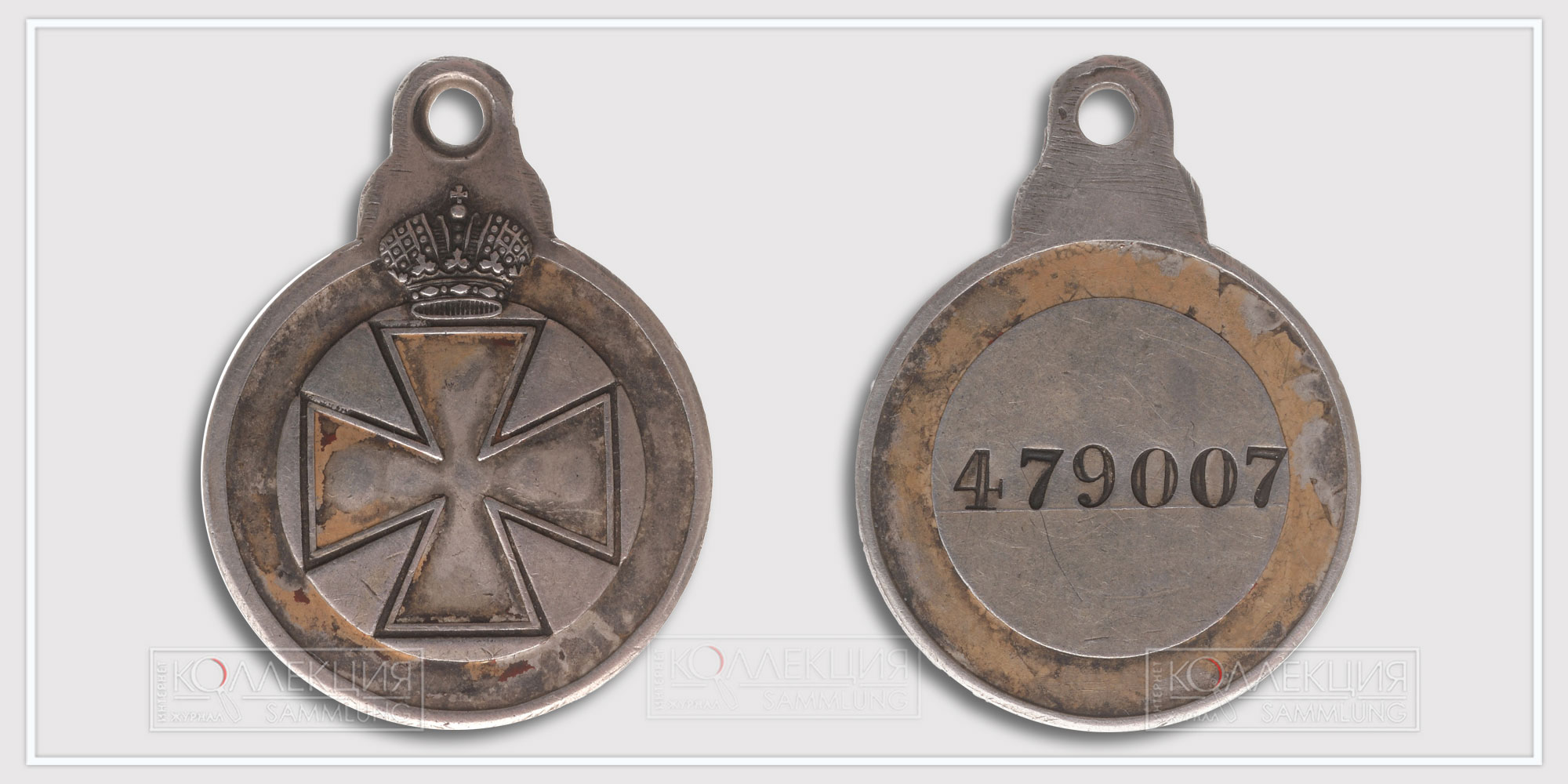 Л. С. Круглая медаль. В центре, под императорской короной, четырёхконечный крест, залитый красной эмалью.